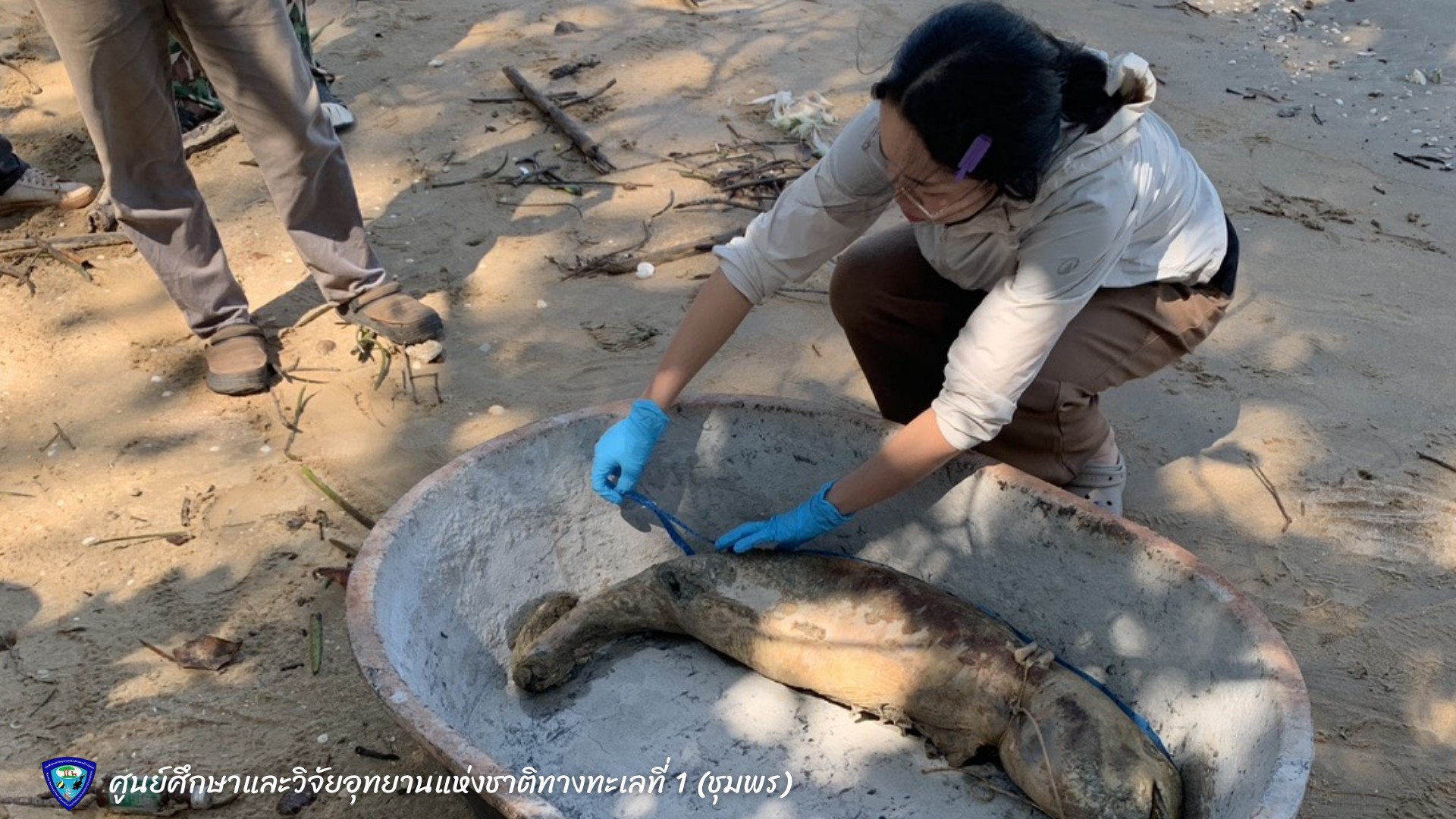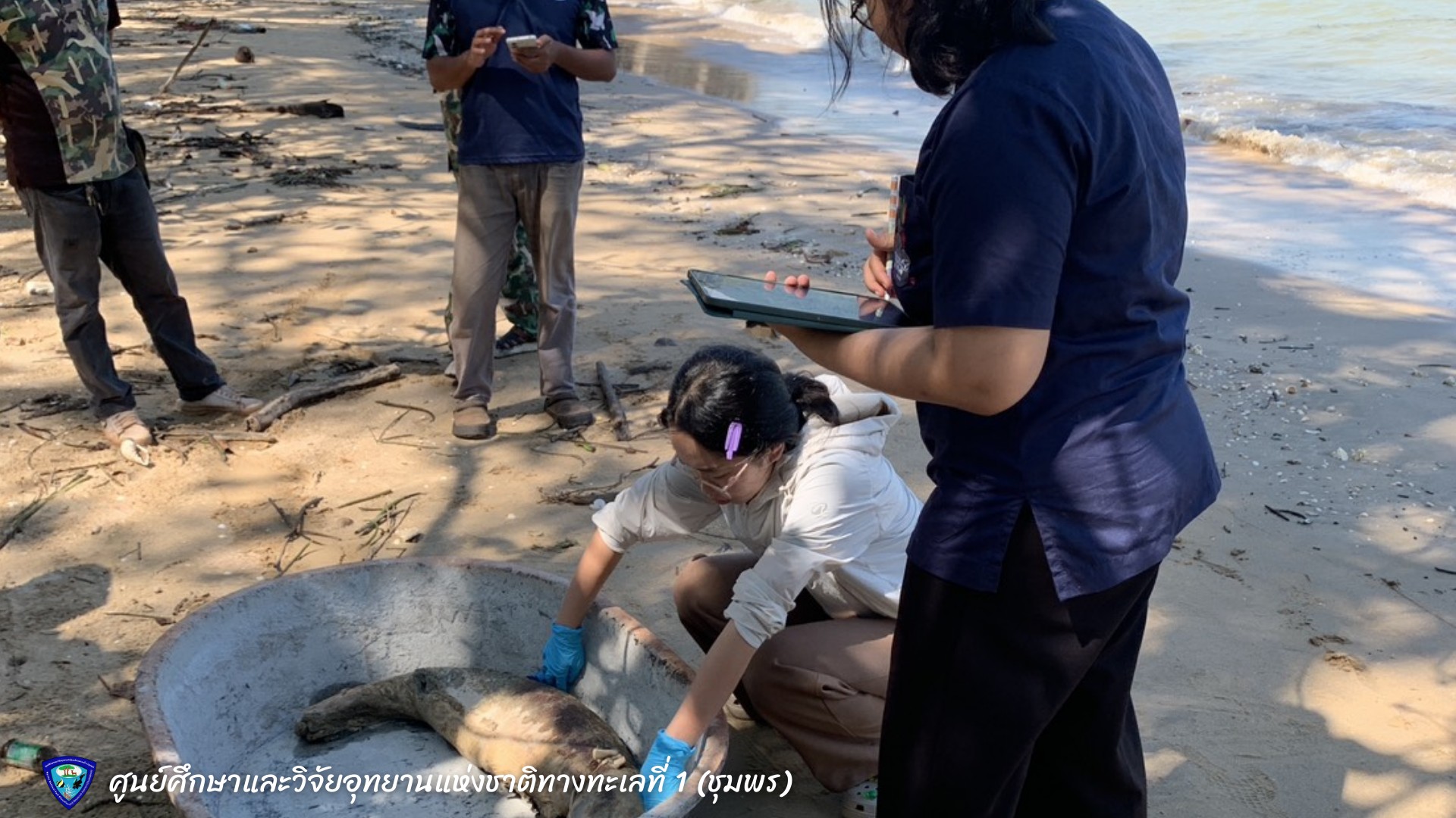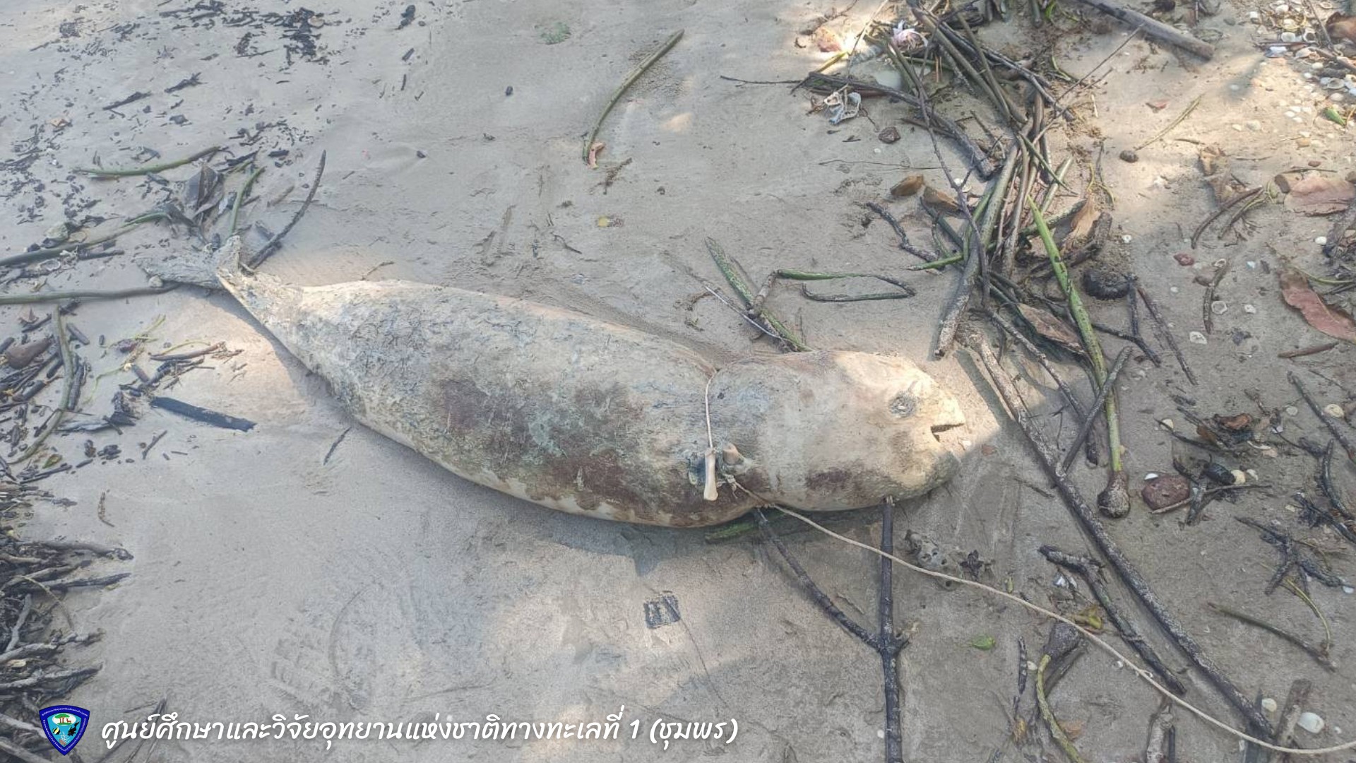 วันพุธที่ 17 ธันวาคม พ.ศ. 2568 ศูนย์ศึกษาและวิจัยอุทยานแห่งชาติทางทะเลที่ 1 ชุมพร ร่วมกับอุทยานแห่งชาติหมู่เกาะชุมพร หน่วยลกแพะ และกรมทรัพยากรทางทะเลและชายฝั่ง (อ่าวไทยตอนกลาง) ได้รับแจ้งจากชาวบ้านว่าพบซากโลมาเกยตื้น บริเวณอ่าวบ้านมะขาม ม.11 ต.ด่านสวี อ.สวี จ.ชุมพร พิกัด 0523624 1131522